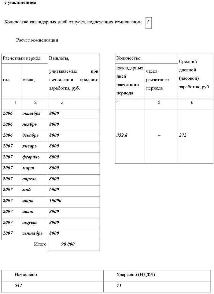 Расчет компенсации за неиспользованный отпуск при увольнении